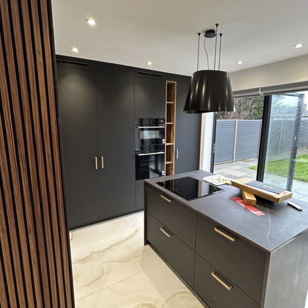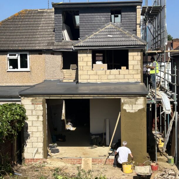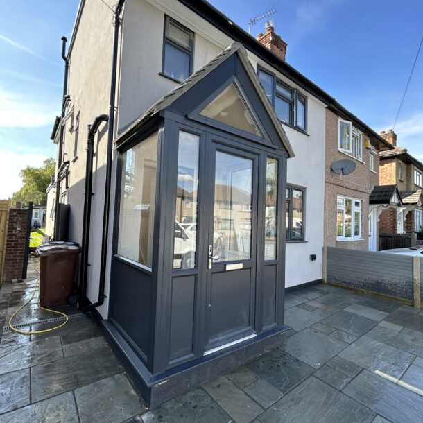 The work we did for our client in Headstone was complex due to its size, scope and duration. We converted the loft, erected a two-story rear extension, constructed a front porch, paved the driveway and the side of the property, installed a new kitchen and erected a summer house. We completely transformed the inside and outside of the property, doubling its living and entertaining space in the process and improving its functionality, aesthetics, and overall value. The new, welcoming space is a testament to thoughtful design and careful execution of our team and successfully combines modern aesthetics with functionality.
